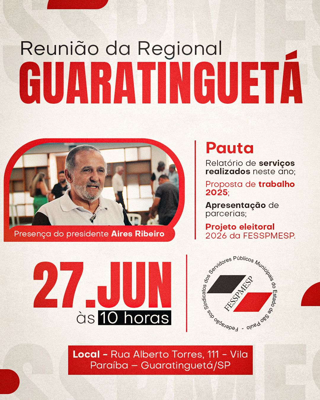 A regional vale do paraíba recebeu os sindicatos das cidades de: Cruzeiro, Piquete, Aparecida, Guaratinguetá e Ubatuba.